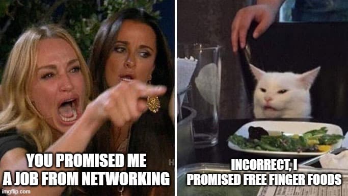 Consider networking a tool in your toolbelt. Networking alone won't get you a job, you need to have the skills to go along with it. With that being said, have you joined groups, twitter communities, local meetups geared toward your career interests? Did you buy a ticket to Render? 🤨